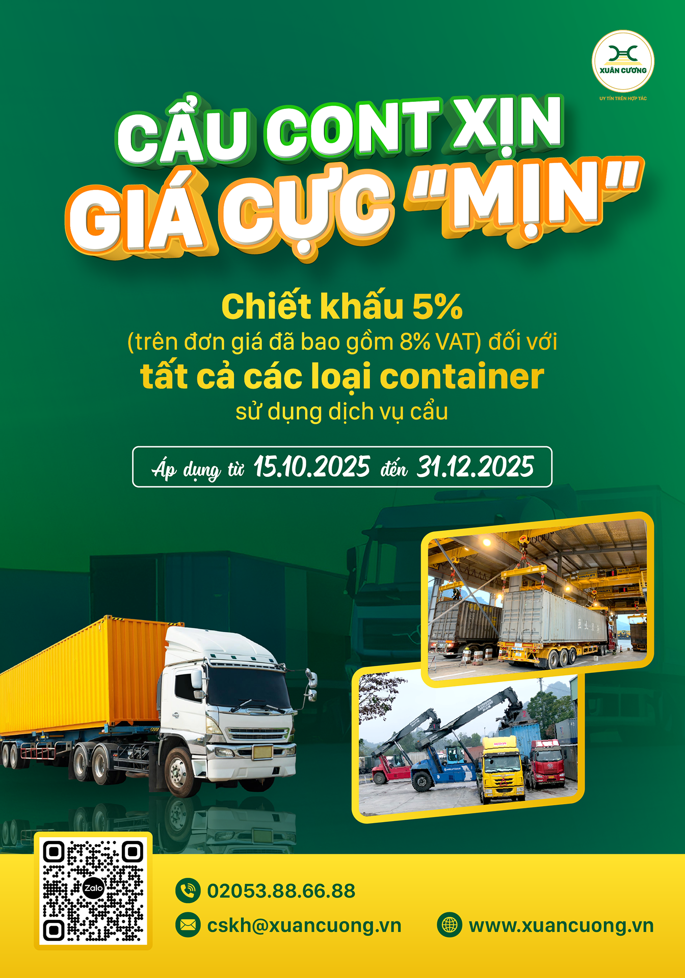 Kính gửi: Quý Khách hàng, Sau khi triển khai chính sách ưu đãi đối với dịch vụ cẩu container từ ngày 15/04/2025 đến 14/07/2025, Công ty Cổ phần Hữu Nghị Xuân Cương đã tiến hành theo...
